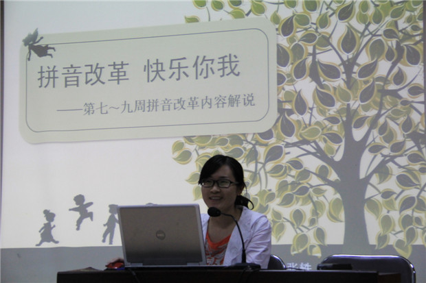 会议由天宁区教师发展中心王勤老师主持,王老师用她特有的和风细雨的方式为大家明确改革的重大意义。一年级的拼音改革如此重要,作为一线的老师们又该如何将理念付诸行动,理论与实践相结合呢?来自四个集团校的老师代表向大家娓娓道来。局小教育集团的 卢赟 老师重点讲述了第一周和第二周的教学内容、目标和具体实施建议。博爱教育集团华抒艳介绍了第三周到第六周的教学安排,化整为零,分散难点,科学建构拼音教学流程。二实小教育集团张轶以一堂拼音复习课为载体,清晰地阐述了二实小教育集团老师们的思考。解小刘亦的讲述分为四个板块,循序渐进,图文并茂,详实而独特。
