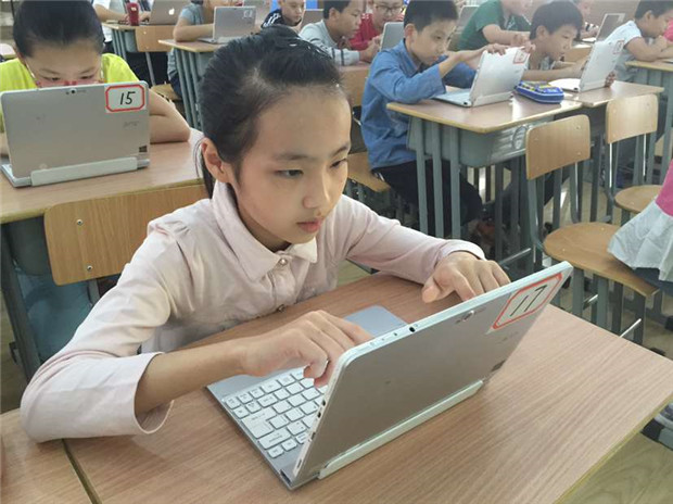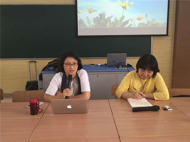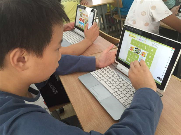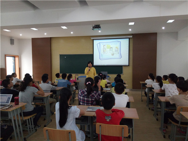 本次活动分两大版块。第一版块是聚焦课堂,由数字化子课题负责人王蕾老师执教五年级第一单元课外拓展课《We all love ice cream》。随着轻快的音乐声响起,王蕾老师以她特有的磁性嗓音拉开了课堂的序幕。王老师选取的绘本故事深深地吸引了学生的眼球,除了王老师的个人魅力之外,更多的是由于尚学平台的介入。新的学习模式让学生们体会到了自由与奔放。面对着多彩的学习平台,学生自主学习的时间明显增加,哪里不会点哪里,“So easy”!就这样,在不知不觉中,学生轻松解决了词句难点,这就是E学习带来的变革,不需要老师再苦口婆心地一遍一遍指导,学生完全可以根据个性化的学习需求来解决问题。紧接着,王老师又利用了几个生动、有趣的游戏对文本进行了处理,学生在玩中学,在学中玩,不亦乐乎。最后,王老师要求学生以思维导图的形式来对文本进行更深一步地理解和交流,同时还给学生提供了几个小贴士,为学生的学习扫清一切的障碍。王老师的这节英语数字化学习研究课令我们耳目一新,它打破了传统的教学模式,以学习平台为助力更多地给予学生自主学习的空间,同时对于及时收集学生学习过程中出现的问题起到了很好的辅助作用,这就像是扑面而来凉爽的风令人心情愉悦。