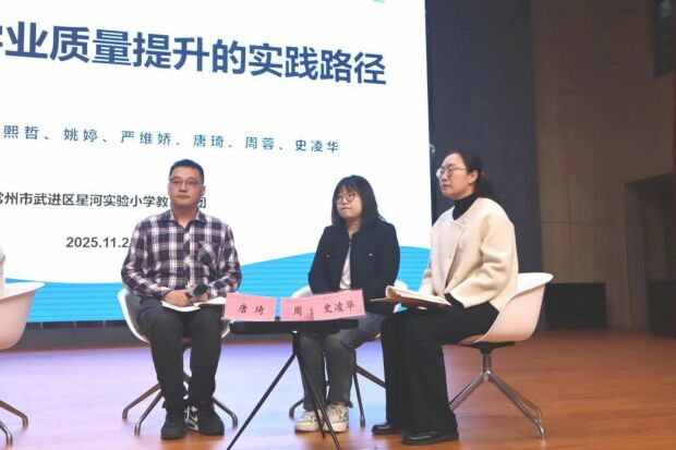 武进区星河实验小学副校长潘香君引领星实小教育集团骨干教师,围绕《学情导航:学业质量提升的实践路径》开展教学沙龙活动。此次沙龙研讨精准聚焦学业质量主题,共同探寻提升教学质量与效率的有效路径。各校区学科负责人基于学科视角,深入剖析本校区学生学习情况,并针对性地提出专题教研、序列化练习以及命题研修等相关策略,呈现出各校区兼具共性与个性的学业质量提升方案。