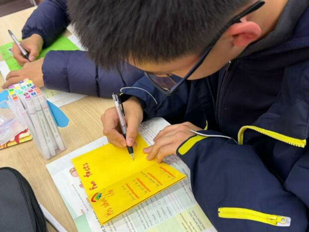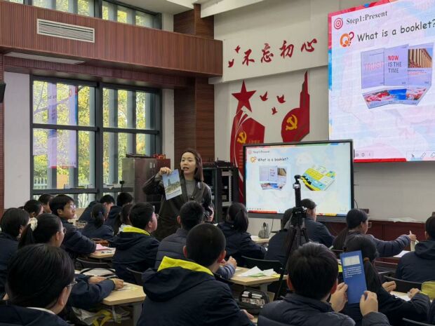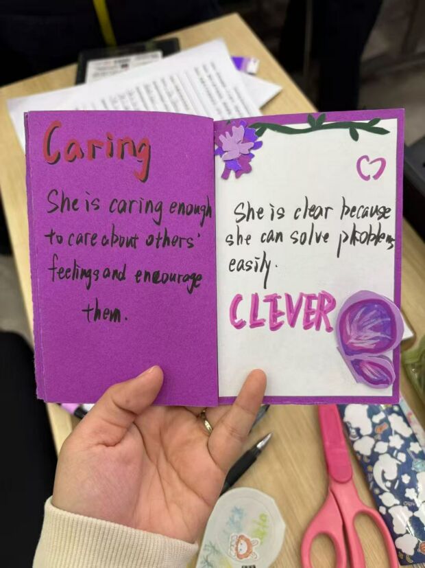 金珊老师执教了英语项目化学习课(PBL)----《班级友谊手册》,。课程以制作班级好友手册为核心项目,分呈现、规划、制作、分享评价四步推进,贯穿项目化学习理念,以新课标核心素养为导向,落实“教学评一体化”。教学融合传统元素,兼顾语言能力、文化意识等四大素养培养,实现“做中学、学中用”。课后通过个人完善作品、班级整合手册的延伸任务,连接生活,深化友谊与成长的主题。