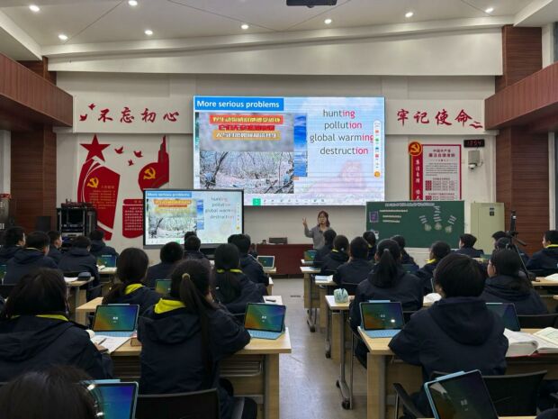 张程佳老师执教《单元主题意义下的构词法教学》。本节课以 “Wild Animals” 为主题,聚焦 - ing、-ion、-ness 三种名词后缀,遵循新课标 “主题引领、语用为本、素养为重” 理念。打破传统构词法 “孤立讲规则” 模式,将语言知识与野生动物保护主题融合,整合字典(传统工具)与 AI(智能工具),构建 “自主探究 — 合作实践 — 主题升华” 路径,实现 “夯实基础再到素养培养” 双重目标。