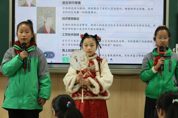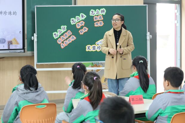 在课例展示环节,经开区芙蓉小学颜静雯老师执教《芙蓉珍珠的秘密》一课。课堂上,学生们通过资料展示、动手实验、采访记录、开蚌演示及珍珠妆走秀等多种形式,生动展示了前期对家乡珍珠文化的深度研究。随后师生围绕“如何宣传推广家乡珍珠及文化”展开头脑风暴,共同设计推广方案,体现了从探究到实践的综合活动过程。