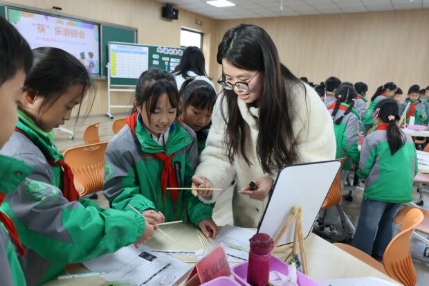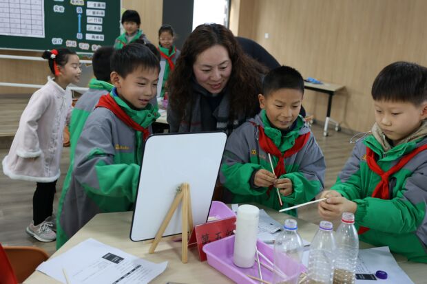 经开区实验小学曹韵婕老师执教《向“筷”乐出发》一课。曹老师立足生活实际,引导学生围绕日常餐具“筷子”展开多元化探究。课程中,学生通过个人筷子使用情况调查、开展“筷子导热性”实验以及自主设计趣味筷子游戏,将知识、技能与想象力转化为可触摸、可分享的成果,学生在实践中收获了知识内化与创意萌发的双重快乐。
