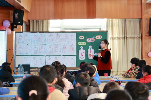 溧阳市文化小学教育集团(燕园路校区)周艳琼老师执教《风的形成》一课中,以“模型建构”为主线,引导学生从“人造风”经验出发,通过“感知—比较—建模—迁移”四个环节和三阶递进实验,直观探究空气冷热流动规律。学生亲历模型建构与修正过程,深入理解风的成因,有效培养了科学建模思维与推理能力。