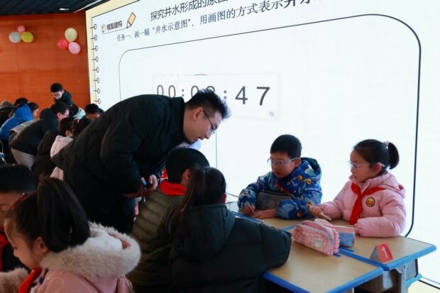 溧阳市竹箦中心小学陈曦老师执教《地下水》一课,以“井水来源”驱动探究。学生经历概念图绘制、物理模型搭建的过程,理解“不易渗透层”等关键概念,直观模拟雨水下渗与含水层形成。该设计融合探究与实践,有效培养了学生的模型思维与系统认知。