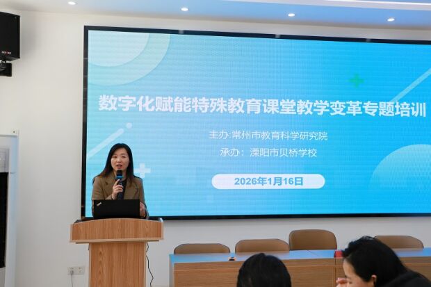 1月16日,数字化赋能特殊教育课堂教学变革专题培训在溧阳市贝桥学校举行。常州市教科院特教教研员、各区特教教研员、各特殊教育学校领导及骨干教师参加了本次活动。