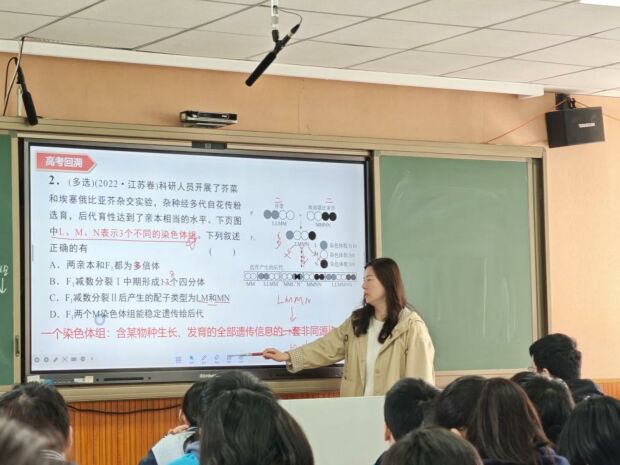 致远楼观摩教室内,两节研讨课精彩上演。省武高张建芬老师以拟南芥变异类型为情境,常州一中赵家菁老师依托水稻育种科研案例,在项目式、探究式学习的架构下,带领学生复习生物变异的核心知识,打通“教考衔接”的最后一公里。课堂上,学生从真实科研数据中抽丝剥茧,在解决实际问题中锤炼生物学素养,充分展现了高三复习课的新样态。